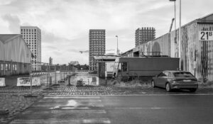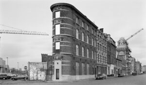 The first part of this series of photographs shows how the 19th century belt around Antwerp looked like in 1993; we photographed the very same area a second time in 2022-2023. Part of the photographs were made again as a re-photographic project; so, we have used the exact same standpoints, perspective, height as in the 1993 photographs – so that the viewer can see how the city has transformed. But we also added a whole new 2023 series of photographs to show how the city looks at that moment in time.