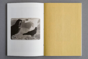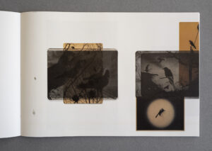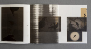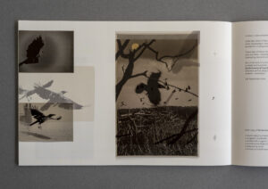 I decided to use every technique I could think of to make my crow pictures different from anything I had done before; I wanted to break the rules I had so diligently followed all these years rather than to make the perfect print. I cropped where I thought it would bring a more interesting image, used coffee and/or tea to change the colour of the print, mixed chemicals the wrong way, added gold to the surface sometimes, switched on the light during development to create solarization effects, etc. – all in all I used coincidence as a creative factor. By re-photographing the final prints, I introduced a bit of a shadow in the reproductions of the prints so the images in the book would have a little bit of shadow too, as if you could touch them.