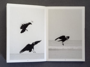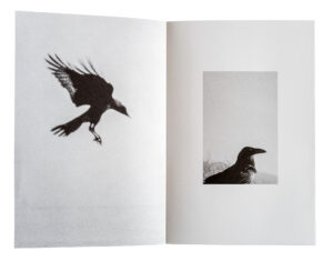 I asked Dutch writer Kester Freriks, known for his extensive knowledge and essays on nature (and much more) if he would be willing to add text to the book – which he accepted. His text explained the role two ravens, Hugin and Munin, both belonging to the God Odin, played in ancient times. Hugin represented ‘memory’, Munin stood for ‘thought’. Both were sent to earth by Odin to keep an eye on us, people. In the book, van Zoetendaal edited the images in such a way that there was a movement from high to low and back again to high (in the trees).