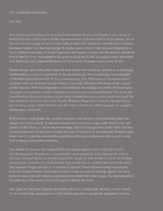 ‘… opposite every sculpture, façade or colonnade carved in marble is a void in the mountains of Carrara, an at least equally large volume taken from nature by man. It is this negative form of architecture in the form of caves, craters and scraped bare slopes that, when overlooking the landscape from a mountaintop, grabs you most strongly by the throat: the breathtaking feeling that unimaginably large stone volumes are gone. People speak of ‘architecture of abstraction’: the creation of architectural forms, not by building something, but by taking something away.’