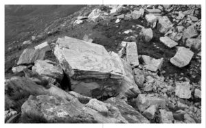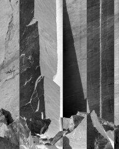 It is this part of the text that helps me now to look at the quarries from a new, slightly shifted perspective. It is also this reason that I start the book with an image made in 1987 that shows a human form, chipped from the rock, in essence a negative form, due to total coincidence. At the same time, the book closes with a photograph made in 1985 to which I applied a negative rectangular form using digital techniques. It is also this approach that I intend to research more extensively in the two years to come.